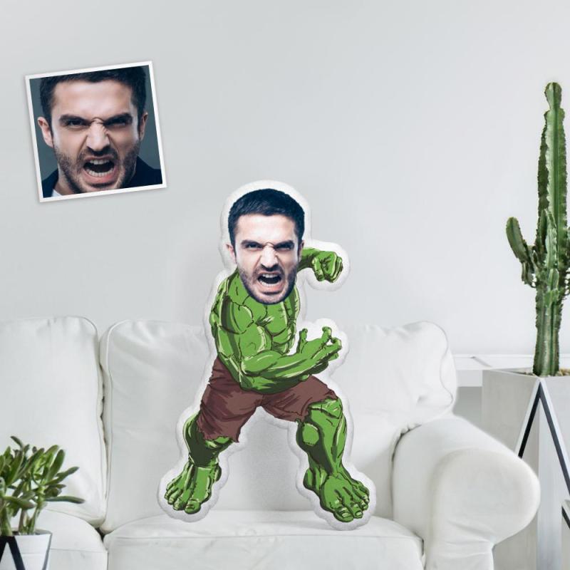 Startseite / Benutzerdefinierte Gesichtsfoto Minispielzeug Einzigartig Personalisiertes Hulk In Battle Dekokissen Ein wirklich cooles Geschenk