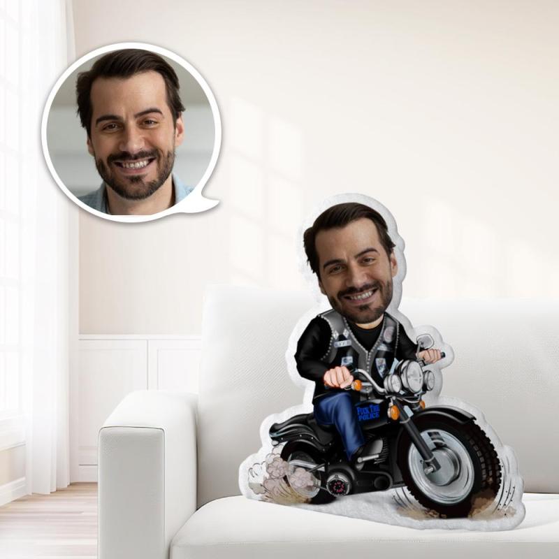 Startseite / Benutzerdefinierte Motorrad Mann Spielzeug Personalisiertes Foto Mein Gesicht auf Kissen Einzigartig Personalisiertes Dekokissen Ein wirklich cooles Geschenk