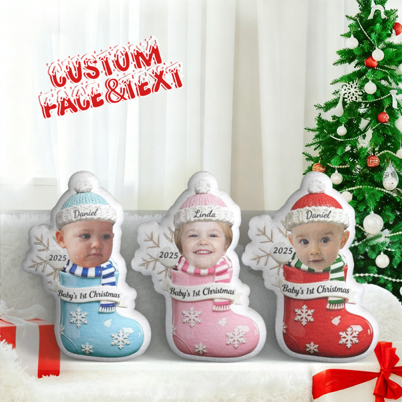 Niedliches Baby-weihnachtskissen Mit Individuellem Gesicht, Personalisiertem Porträt Und Namen