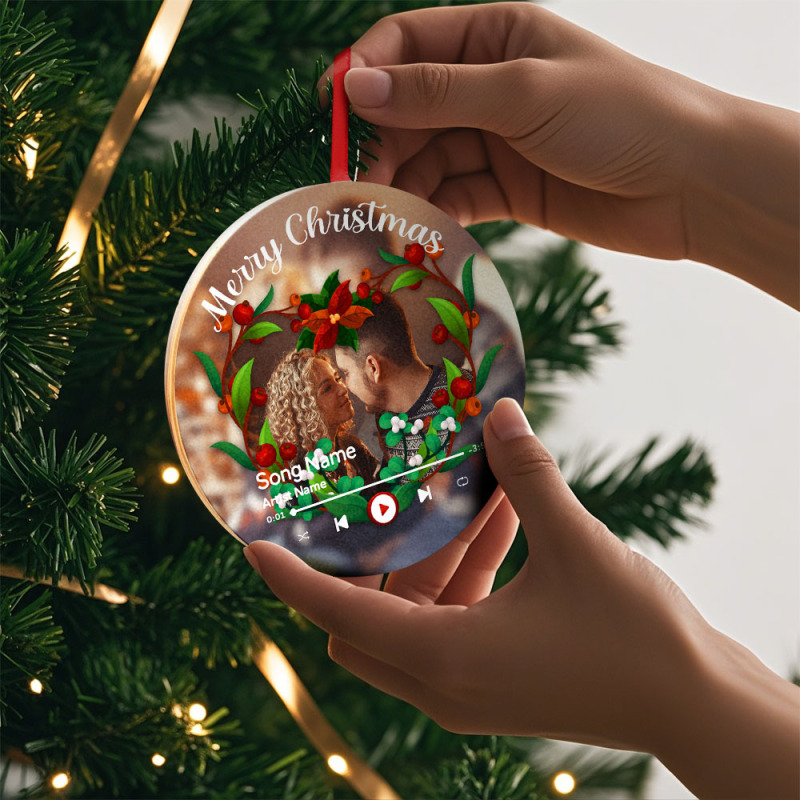 Musik- und Foto-Weihnachtsschmuck – Feiern Sie wertvolle Erinnerungen mit unserem anpassbaren runden Foto-Weihnachten Ornament, entworfen, um den Zauber der Jahreszeit einzufangen.