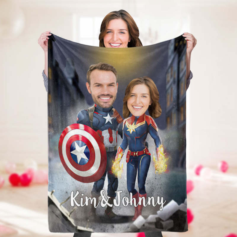 Kundenspezifische Fotodecke Personalisierte Paardecke Kundenspezifische Superheldendecke Captain America Und Captain Marvel Blanket Valentinstagsgeschenke