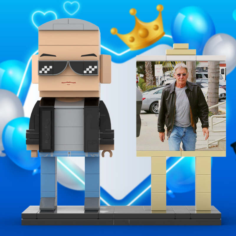 Startseite / Full Body Customizable 1 Person Cool Grey Hair Daddy Street Photo With Classic Outfit Custom Brick with Frame Figures Small Particle Block Toy Brick Me Figures For Father's Day