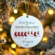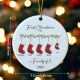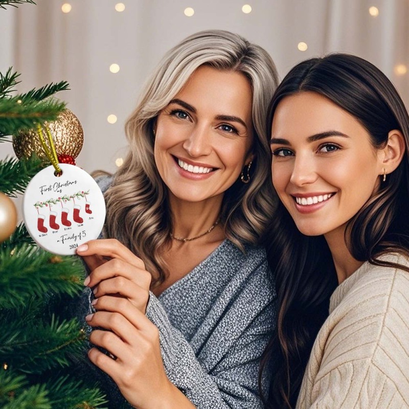 Machen Sie Ihr erstes Weihnachtsfest als Familie mit diesem personalisierten Ornament unvergesslich. Dieses Ornament mit Ihrem Familiennamen ist ein besonderes Andenken an den Beginn Ihrer Familientraditionen. Verleihen Sie Ihrem Weihnachtsbaum mit dieser einzigartigen Dekoration einen Hauch von Wärme und Liebe.