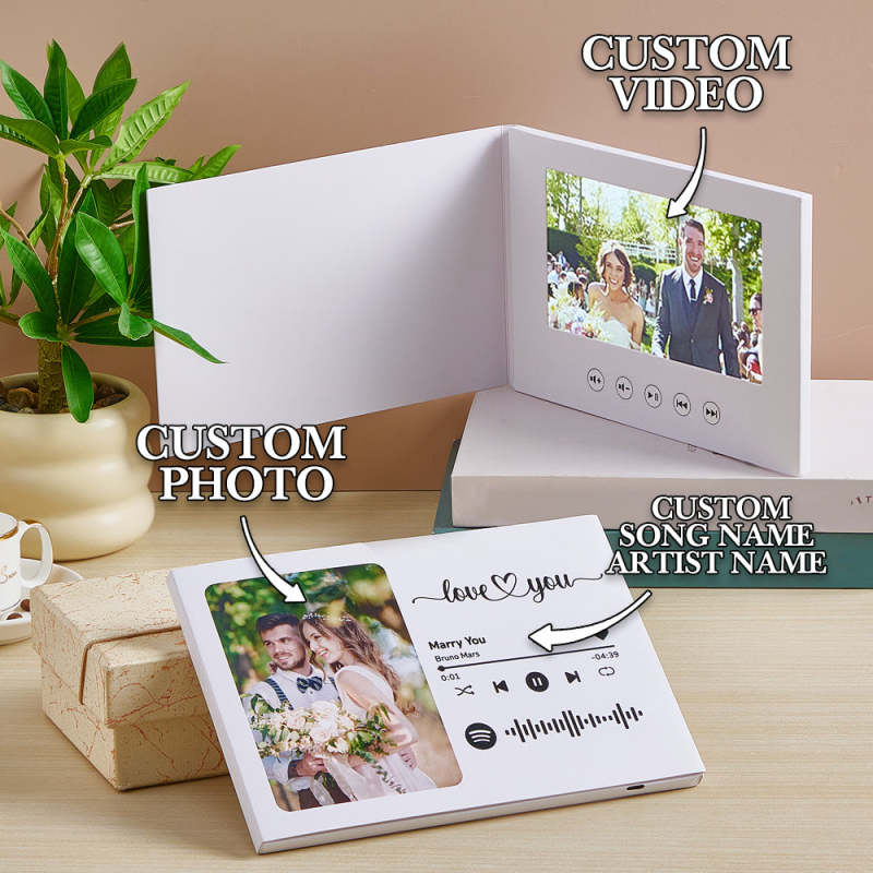 Laden Sie Ihre Videogrußkarte ganz einfach mit dem USB-Kabel auf und stellen Sie sicher, dass sie immer zum Genießen bereit ist. Diese Video-Grußkarte eignet sich ideal als Hochzeitsgeschenk, Geburtstagsgeschenk, Jubiläumsgeschenk oder Weihnachtsüberraschung und ist eine vielseitige und durchdachte Wahl für jeden Anlass.